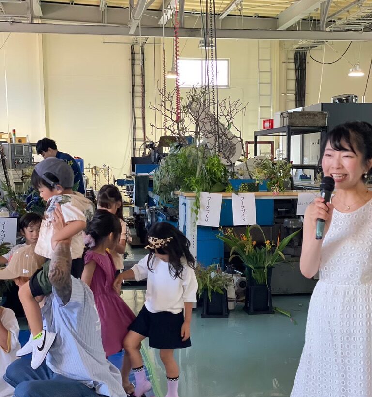 工場ステージでは、子どもたちの元気いっぱいのダンスと、生演奏をバックにした美しい生花パフォーマンスが会場を華やかに彩りました。