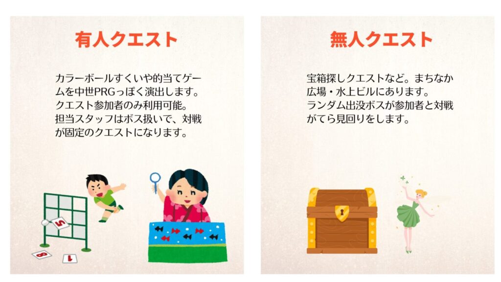 このイベントでは、ゲームの世界から飛び出し、リアルなクエストに挑戦することで、挑戦することの楽しさ、人と人とのつながりの大切さ を体験してもらいます。